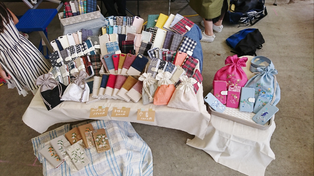 手作りならではの、スマートフォンケースや巾着などのお揃い商品も扱っていらっしゃいました。